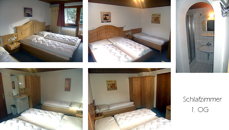 2. Obergeschoss:1 Dreibettzimmer mit Doppelbett und Einzelbett. 1 Schlafzimmer mit französischem Bett (1,60 m). 1 Schlafzimmer mit 2 Einzelbetten. Wohnschlafzimmer mit Doppelbett, Einzelbett, Couchecke, Sat-TV und Balkon. Wohnküche mit 4-Plattenherd, Backofen, Mikrowelle, Geschirrspüler, Toaster, Wasserkocher, Kühl-/Gefrierkombination, Essecke, Balkon. Ein Bad mit Dusche, Badewanne und WC. Bilder der Wohn-/Schlafräume im 2. OG Bilder der Wohnküche im 2. OG Das komplette Haus ist ein Nichtraucherhaus, das Rauchen ist ausschließlich auf dem Balkon gestattet. Ab sofort ist in unserem Ferienhaus Tux W-LAN kostenlos verfügbar. Im geräumigen Keller des Hauses (sep. Zugang von außen) befindet sich eine große Gefriertruhe, eine Skischuhheizung und es gibt ausreichend Platz, die Skier, Snowboards, Schlitten etc. abzustellen. Insgesamt verfügt das Ferienhaus über ca. 260 qm Wohnfläche. Das komplette 2. Obergeschoss ist durch eine Tür vom Treppenhaus abgetrennt. Das Haus ist auch im Winter buchbar, Kurztermine möglich, für mehr Infos bitte hier klicken. Verpflegung